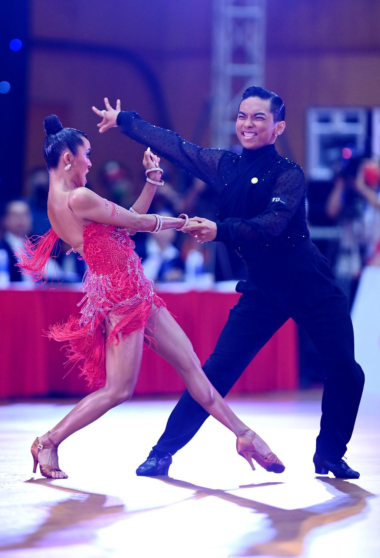 | Và chỉ sau đó ít phút, chính cặp đôi này cũng giành thêm 1 tấm huy chương vàng nữa cho Đoàn Thể thao Việt Nam ở điệu Rumba. Cặp đôi này, cũng giành thêm tấm huy chương đồng điệu nhảy Cha Cha Cha. |