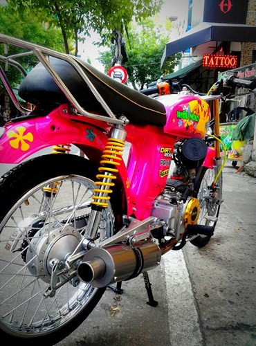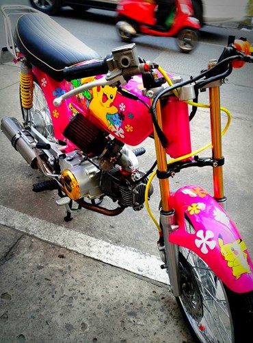 Đồng thời, thân xe cùng nhiều chi tiết được sơn airbrush các cánh hoa nhiều màu sắc sặc sỡ, cùng với hình ảnh nhân vật Pikachu trong series Pokemon nổi tiếng.