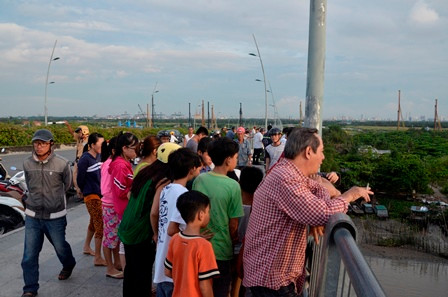 Nhận được tin báo, hàng chục người nhái thuộc Đội cứu nạn, cứu hộ (Sở Cảnh sát PCCC TP.HCM) xuống hiện trường lặn tìm kiếm nạn nhân nhảy cầu mất tích. Hàng trăm người đi đường hiếu kì dừng xe lại xem khiến giao thông qua đây ùn ứ.