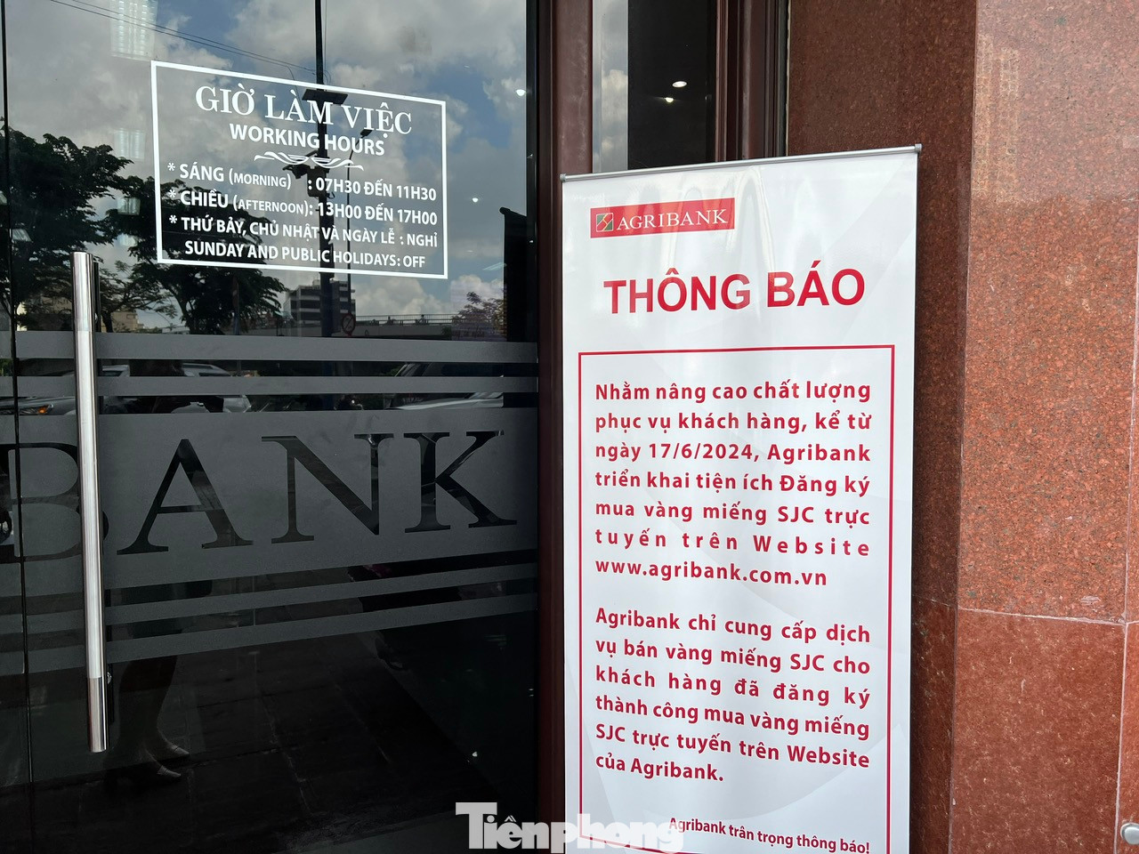Tại ngân hàng Agribank trên đường Võ Văn Kiệt (quận 1), ngay trước cửa ra vào có dán thông báo bán vàng online từ ngày 17/6 và hướng dẫn đường link cũng như cách thức để khách hàng đăng ký mua vàng. Tại đây, khách đăng ký thành công sẽ được mua một lượng vàng, nhận vàng trong chiều cùng ngày đăng ký.