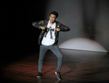 Bên cạnh vai trò cho điểm và nhận xét các phần thi của các bạn sinh viên, Quang Đăng còn trình diễn hai tiết mục nhảy với hai thể loại sở trường là Múa Đương đại và Hiphop.