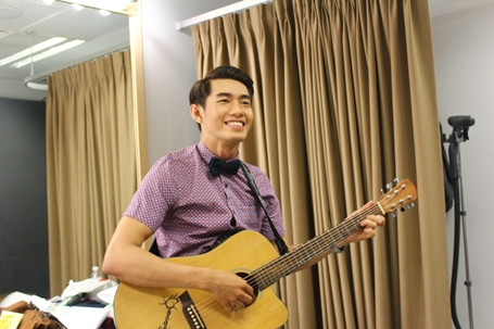 Trong hậu trường, dù khá bận rộn khi phải tự lo mọi thứ từ phục trang cho đến trang điểm, anh vẫn hay chọc cười các thành viên ban tổ chức và tranh thủ đàn hát một vài bản nhạc để góp vui.