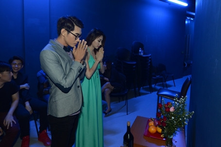 Ngân Khánh và Quang Đăng thắp hương cầu xin tổ nghiệp phù hộ hoàn thành tốt công việc trước đêm thi của các thí sinh.