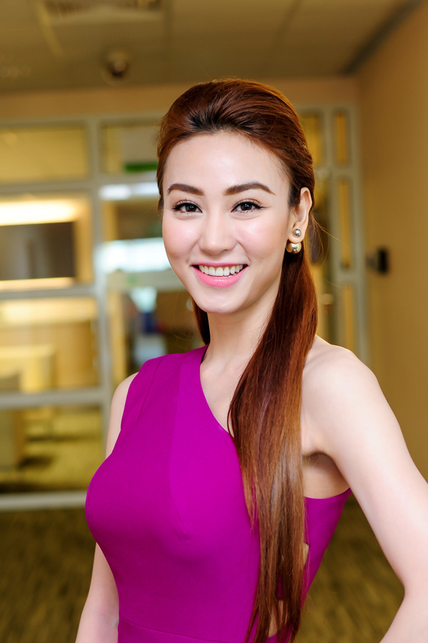 Ngân Khánh vừa hoàn thành đa số cảnh quay của "Mỹ Nhân Sài Thành" và cô trở về thành phố dự sự kiện lớn của một người thân trong gia đình.