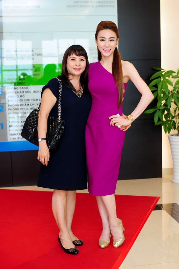 Ngân Khánh rạng rỡ bên mẹ trong sự kiện.