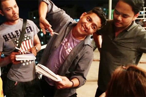 Trong phim, Đức Thịnh bên cạnh việc đảm nhận vai diễn chính còn thử sức ở vị trí đạo diễn cùng Hoàng Duy - chồng ngưởi mẫu Trang Nhung (phải).