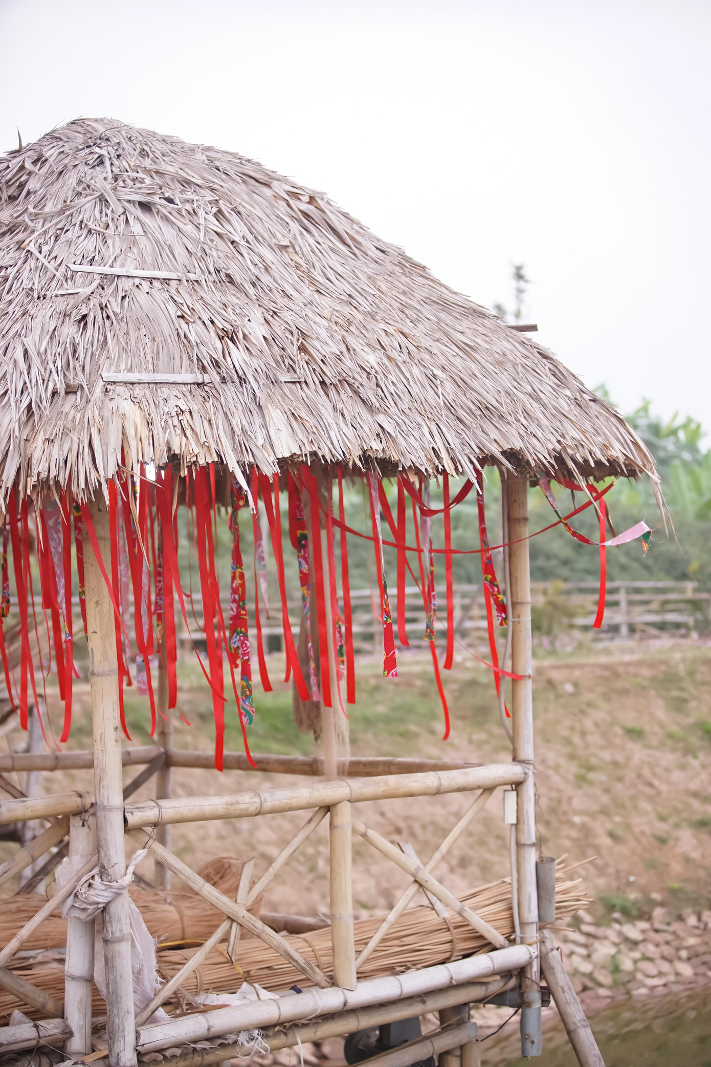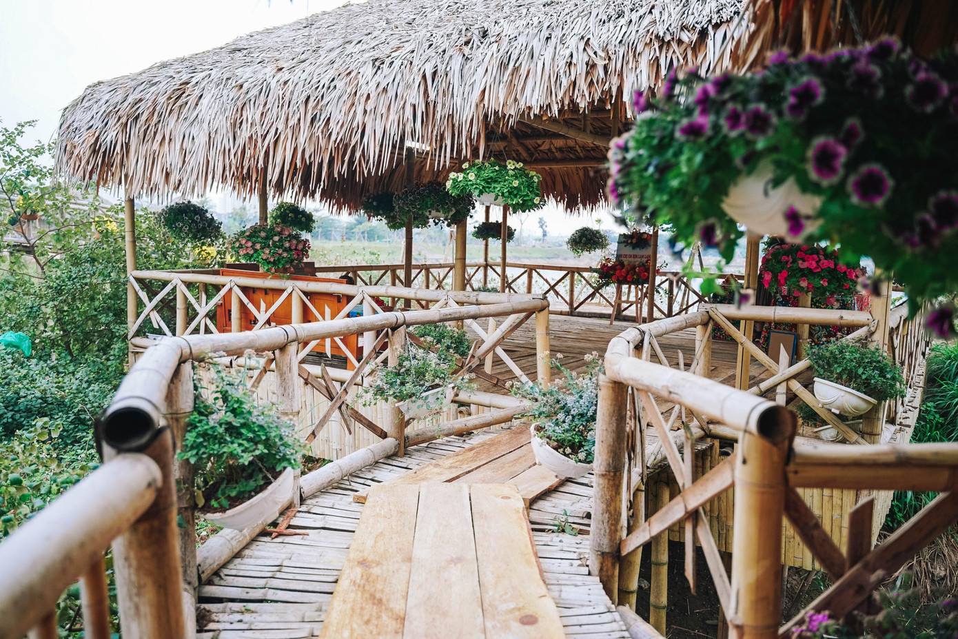 | Các công trình trong Khu du lịch thôn Anh An hoàn toàn sử dụng vật liệu thuần tự nhiên như gỗ, tre, trúc, lá cọ. |