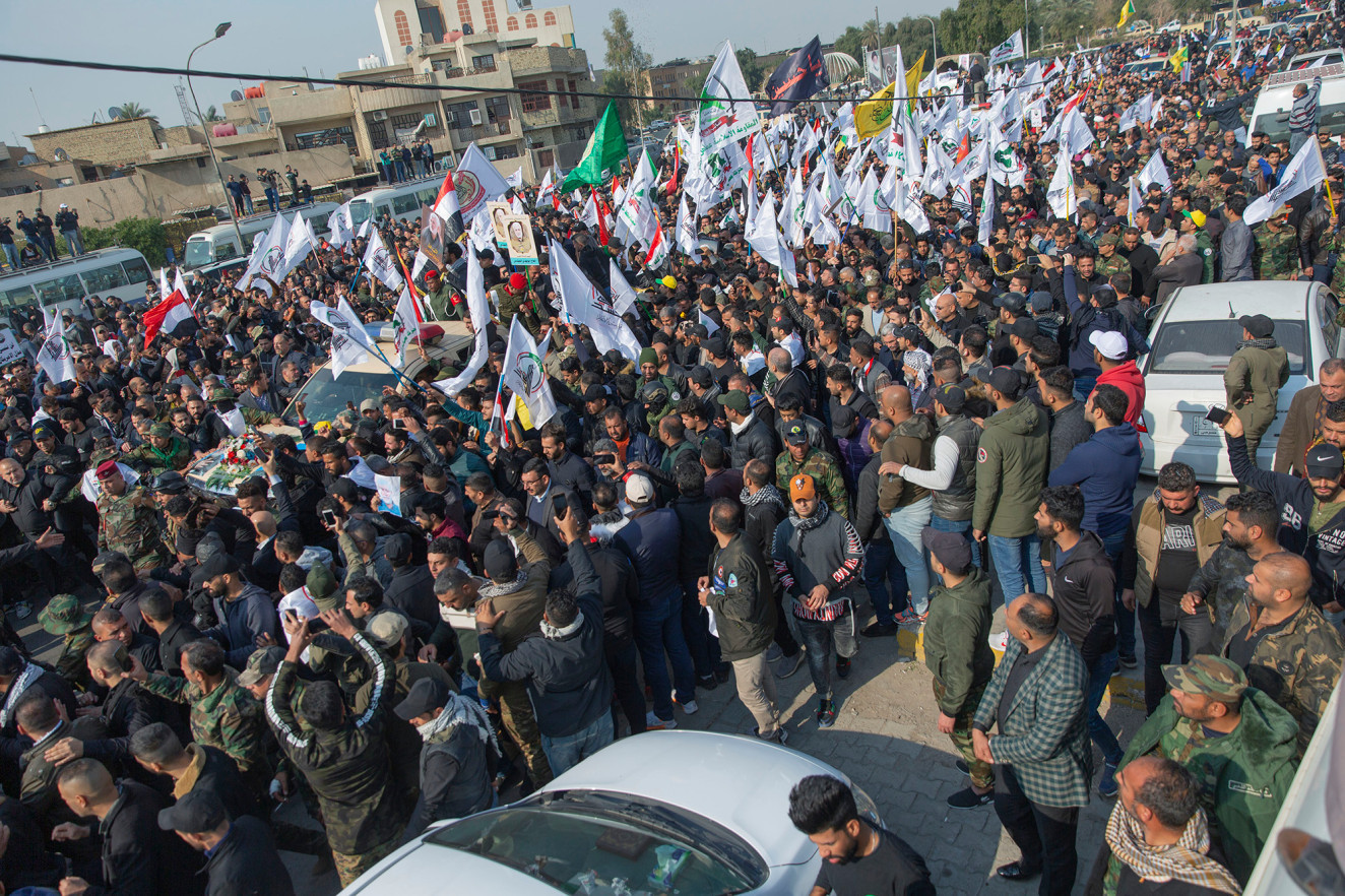 Nhiều người giơ cao ảnh Soleimani. Trong khi một số người khác giương cờ Iraq, hoặc ảnh lãnh tụ Iran - Ali Khameinei.