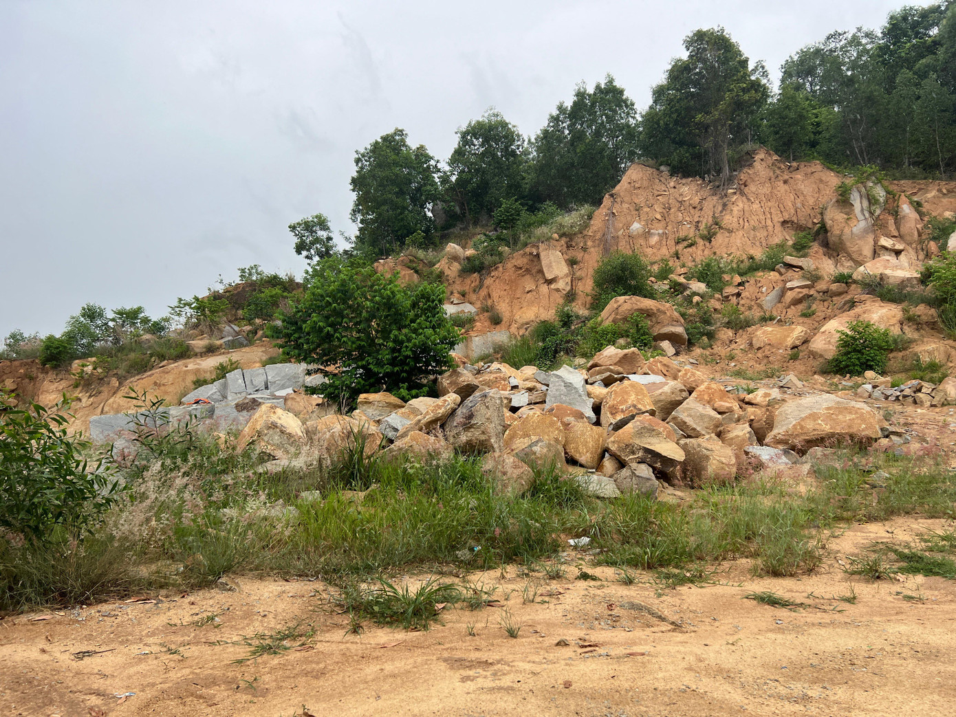 Vào giữa tháng 8 vừa qua, phóng viên Tiền Phong đã có mặt tại hiện trường khai thác đất đá “lậu” ở xã Cam Hiệp Nam, huyện Cam Lâm. Khu vực này trước đây cây cối vốn xanh tươi nay bị đốn hạ và phá đá để khai thác. Nhìn từ xa, các mỏ khai thác trông rất tan hoang.