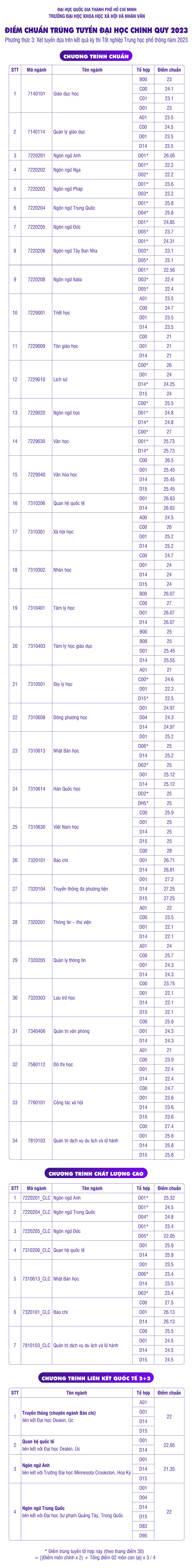 Tối 22/8, Hội đồng Tuyển sinh Trường ĐH Khoa học xã hội và Nhân văn (ĐH KHXH&NV, ĐHQG-HCM) công bố kết quả xét tuyển đại học chính quy năm 2023 bằng phương thức xét tuyển dựa vào kết quả kỳ thi Tốt nghiệp THPT.