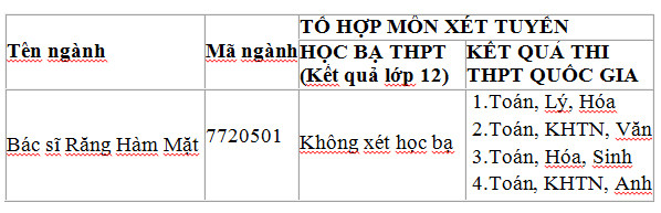 · Học bổng Học sinh trường Chuyên trị giá 5.000.000 đồng/suất cho năm học đầu tiên, áp dụng cho tất cả các thí sinh từng hoặc đang học trường Chuyên của các tỉnh và thành phố đăng ký học Bác sĩ Răng Hàm Mặt có tổng điểm 3 môn xét tuyển ≥ 18 điểm (theo theo kết quả thi THPT quốc gia).