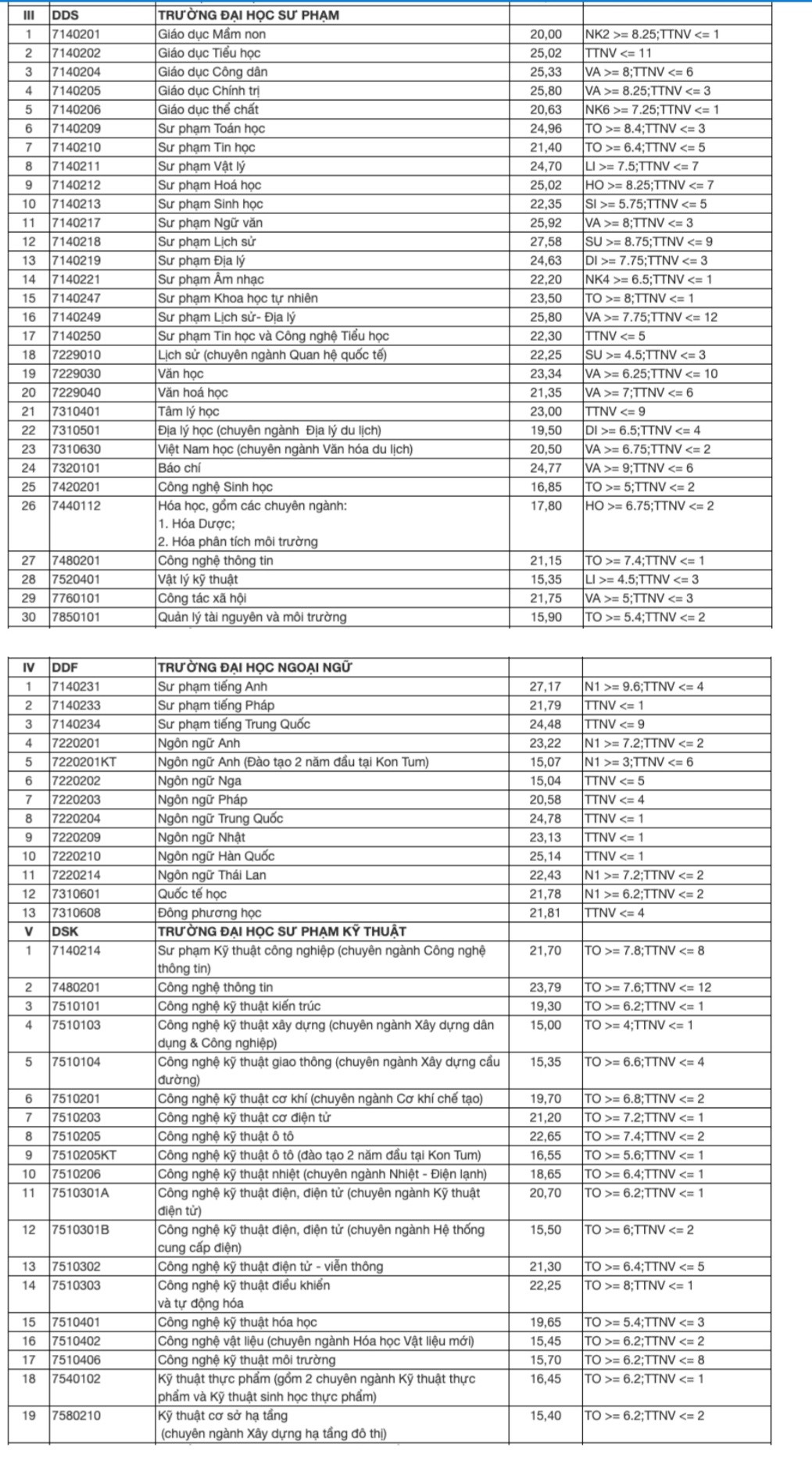 Trong số 9 trường, đơn vị công bố điểm chuẩn, Trường ĐH Sư phạm là trường có ngành lấy điểm chuẩn cao nhất. Cụ thể, ngành Sư phạm Lịch sử lấy 27,58 điểm, với điều kiện môn Sử >= 8,5; Thứ tự nguyện vọng (TTNV) <=9.