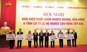 TPO - Ngày 10/12, tại Hà Nội, Ban Chỉ đạo Tây Bắc, Bộ Lao động, thương binh & Xã hội và Ngân hàng Nhà nước Việt Nam đã phối hợp tổ chức Hội nghị bàn biện pháp giảm nghèo nhanh, bền vững 6 tỉnh có tỷ lệ hộ nghèo cao vùng Tây Bắc.
