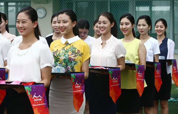 Những cô gái Hàn Quốc trong đội trao huy chương tạiASIAD 17 đã được trải qua 8 tuần huấnluyện vất vả để có thể được phục vụ tại ASIAD lần này. Họ tập đi với những cuốnsách trên đầu hoặc những khay có chai nước để tập giữ thăng bằng.