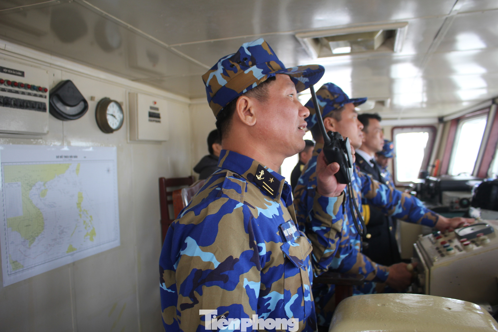 | Trung tá Phạm Thế Tùng (SN 1976, Hải Phòng) Tàu 636, Hải đội 137, Lữ đoàn 169, Vùng 1 Hải Quân khi đang thực hiện nhiệm vụ trong khoang lái. |