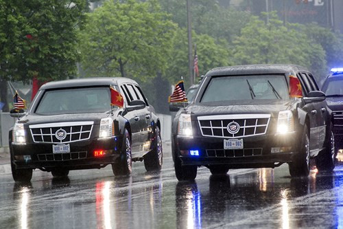 12 giờ ngày 24/5, Tổng thống Mỹ Barack Obama lên đường từ khách sạn Marriott đến Trung tâm Hội nghị Quốc gia. Ảnh: Thanh Hà