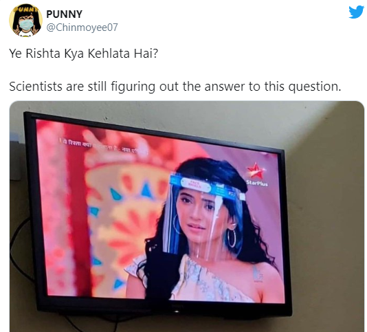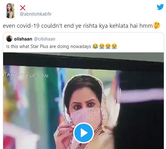 Và cảnh quay đang tạo “cơn sốt” trong cộng đồng mạng Twitter mấy ngày nay, đó là hai nhân vật Naira (do Shivangi Joshi thủ vai) và Sita Chaudhary (do Alka Kaushal thủ vai) nói chuyện với nhau trong khi đeo mặt nạ.