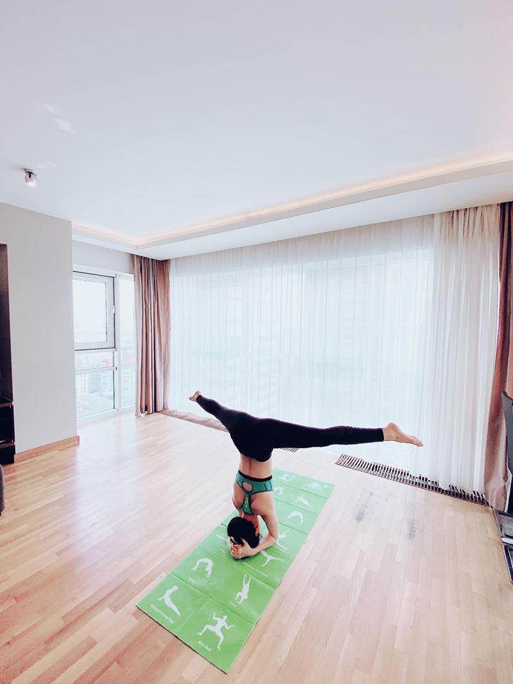 Á hậu Lệ Hằng chăm chỉ tập yoga ở nhà.