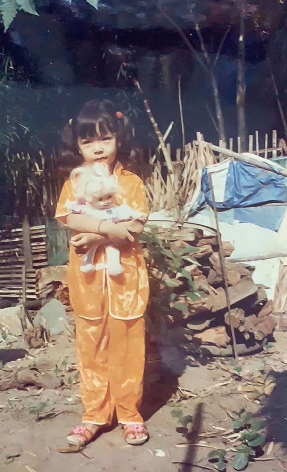 Á hậu Thuý Vân khoe ảnh thời còn bé cực kỳ 'sang chảnh' trong bộ pijama màu vàng.