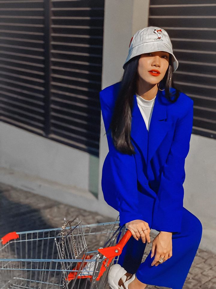 Người đẹp nổi bật với cả 'cây đồ' màu xanh bắt mắt đầy cá tính.