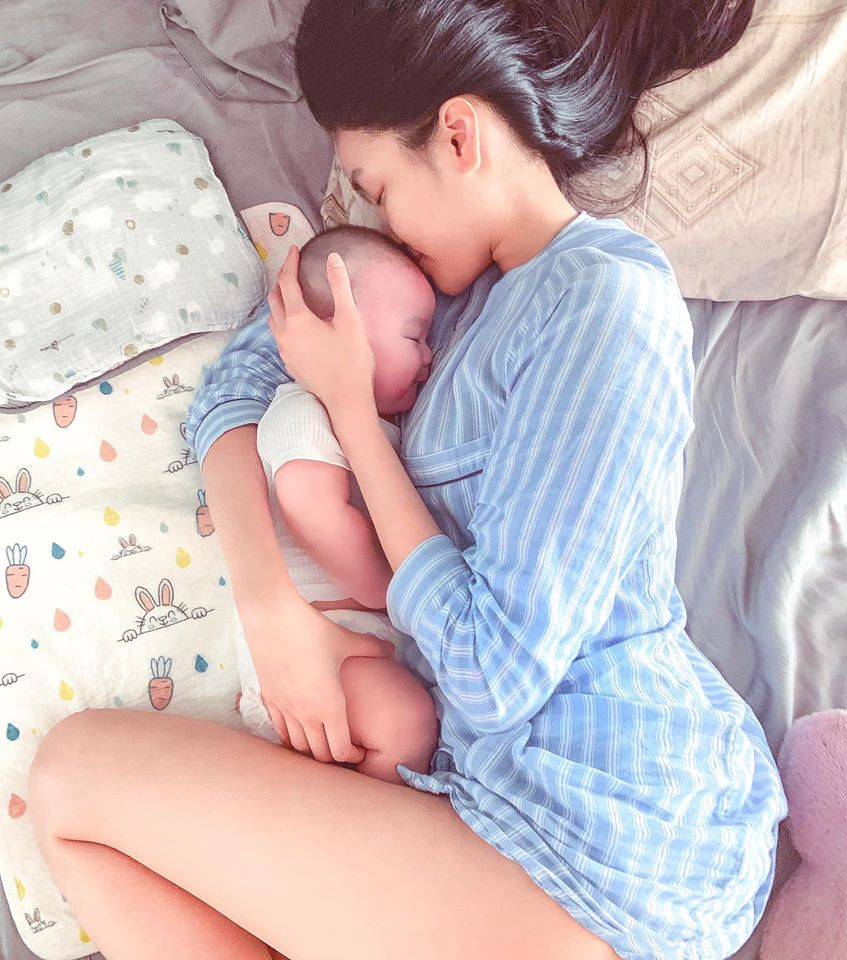 Hoa khôi Lan Khuê đăng tải bức ảnh ôm quý tử trong lòng cực đáng yêu khiến fans 'tan chảy'.