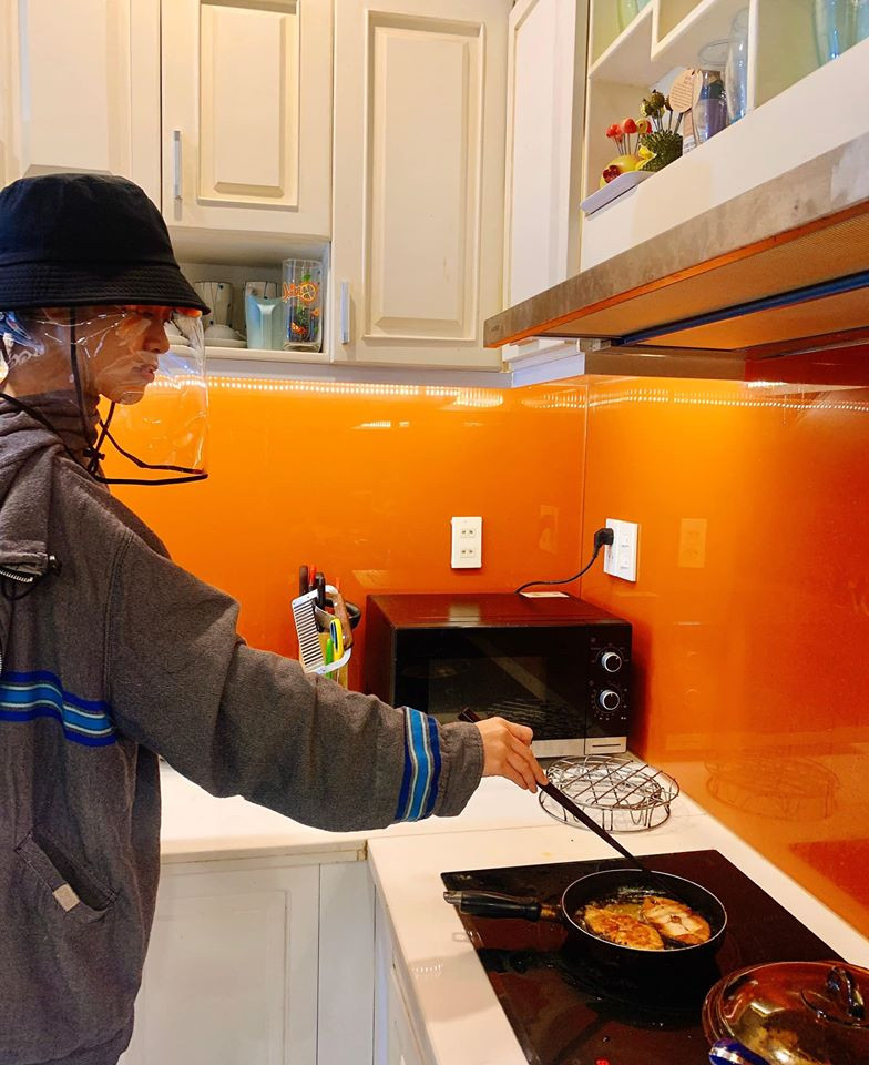 Nhận lời thách đấu với thử thách "5 ngày mạnh mẽ hơn: của đàn chị H'Hen Niê, Hoa hậu Khánh Vân đăng tải bức ảnh ở nhà nấu ăn khi cách ly toàn xã hội.