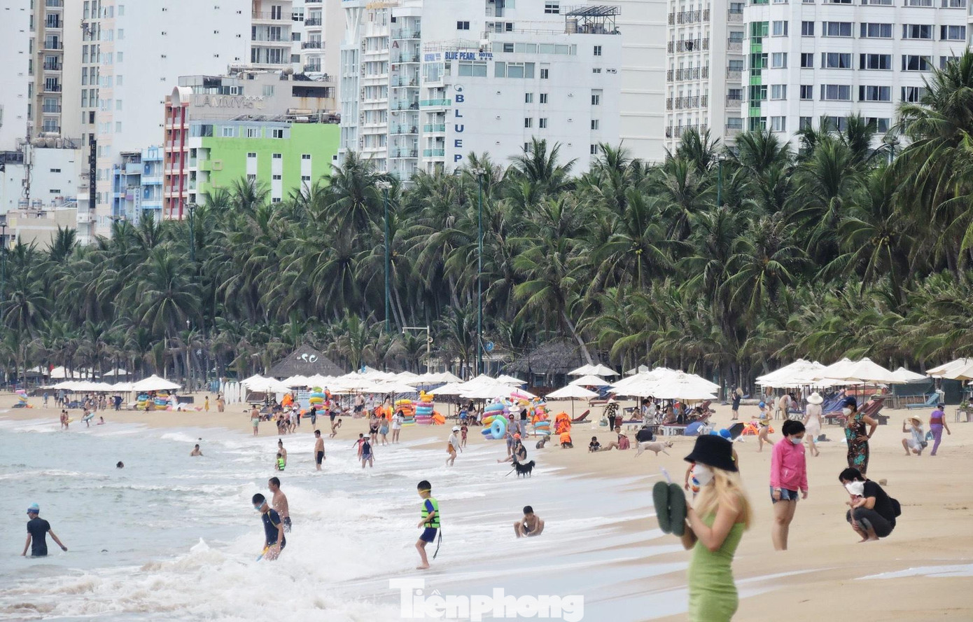 | Du khách nước ngoài vui chơi tại bãi biển Nha Trang |