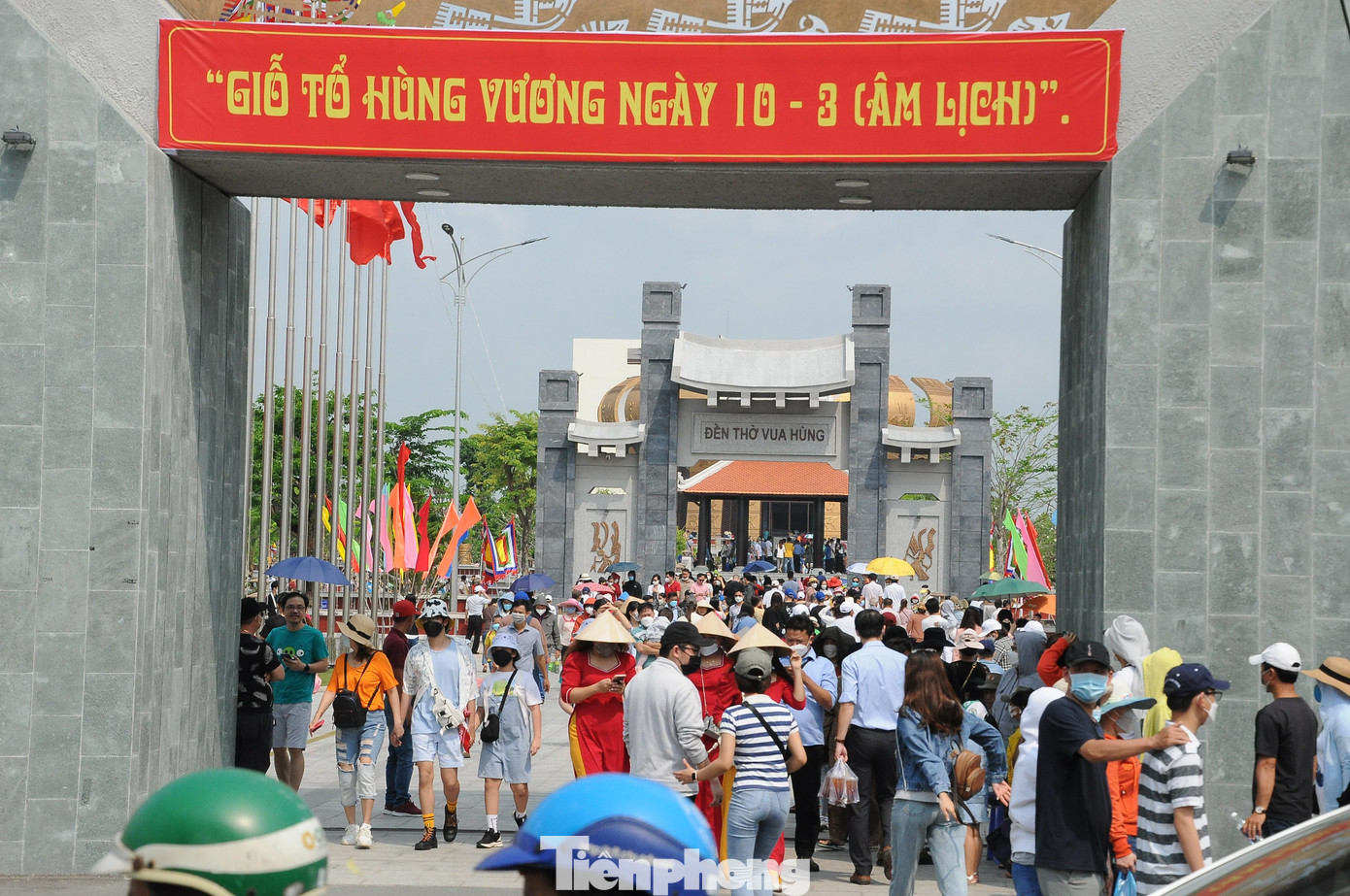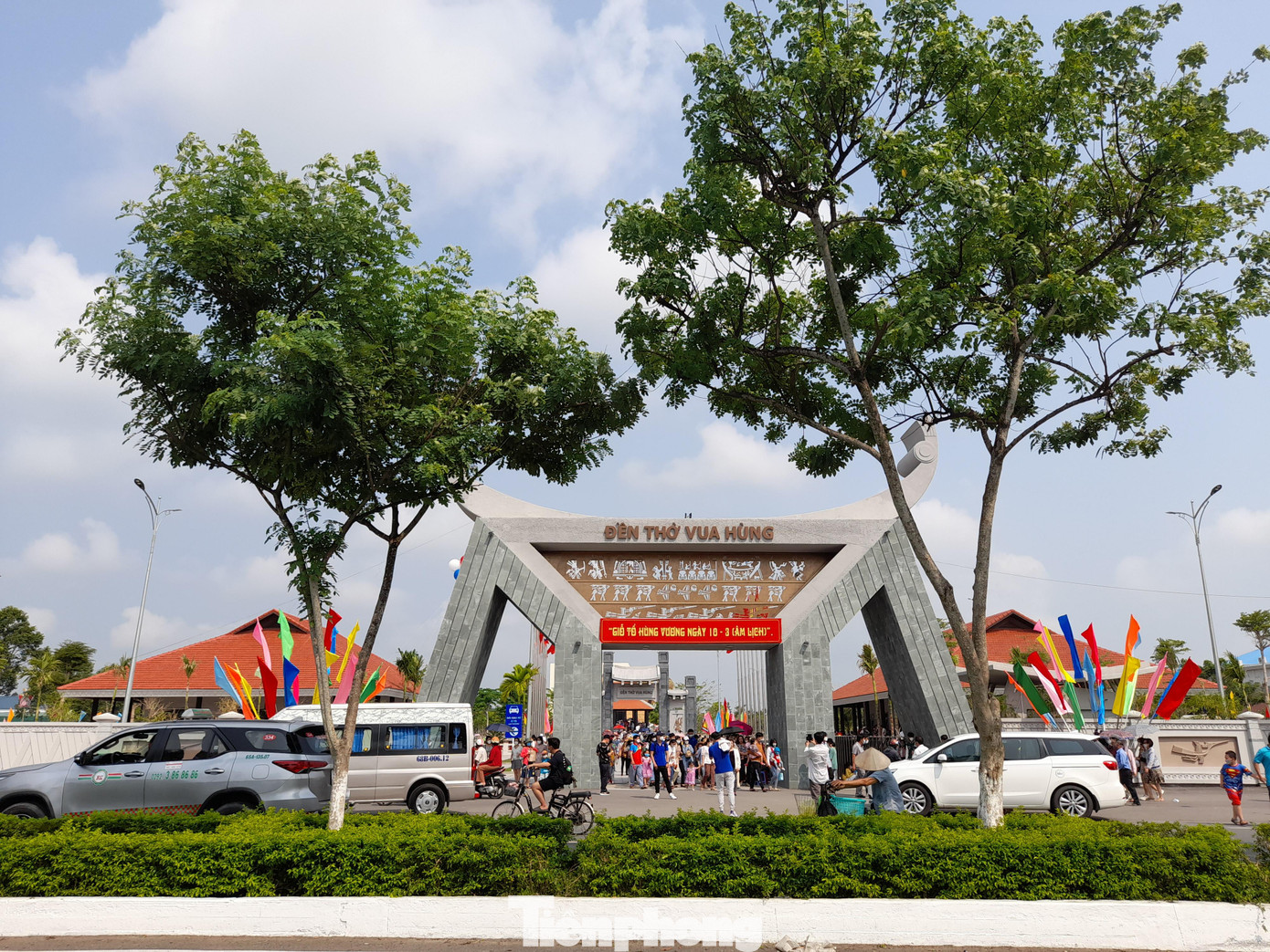 | Gần giữa trưa, đền thờ Vua Hùng vẫn nườm nượp khách. |