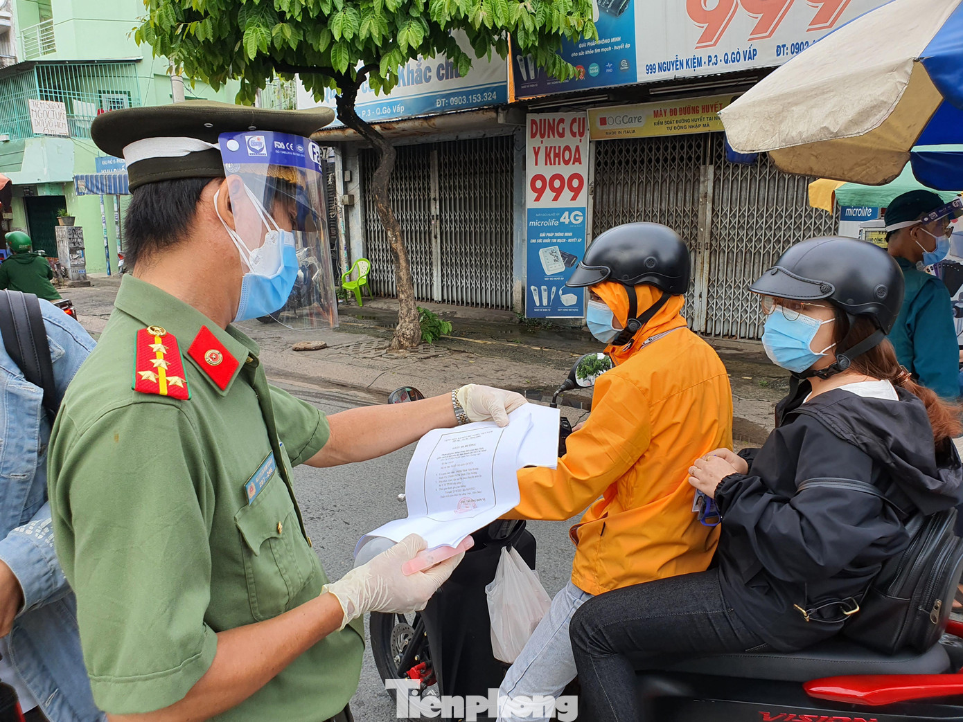 | Lực lượng chức năng kiểm tra giấy đi đường người dân |