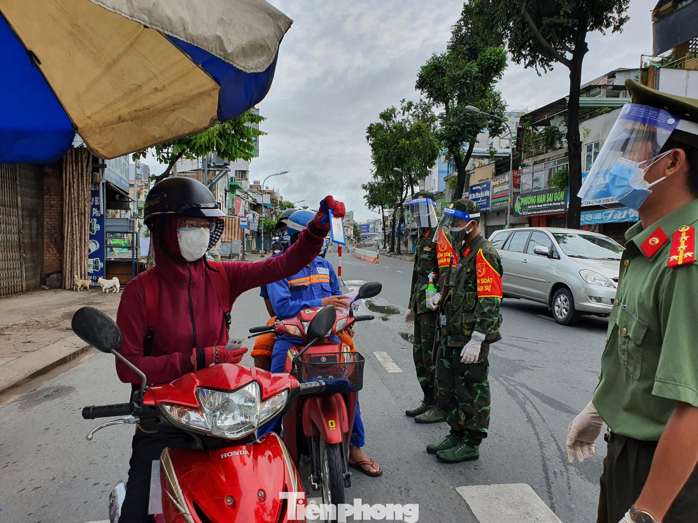 Một cán bộ công an kiểm soát ở đây cho biết, do vừa thay đổi mẫu giấy đi đường nên trong ngày đầu chốt sẽ tạo điều kiện cho người dân được thông hành. "Với một số trường hợp đi tiêm phòng nhưng không có giấy mời hay tin nhắn thì mình buộc phải dùng nhiều nghiệp vụ để đối chiếu, xác minh", cán bộ này cho biết.