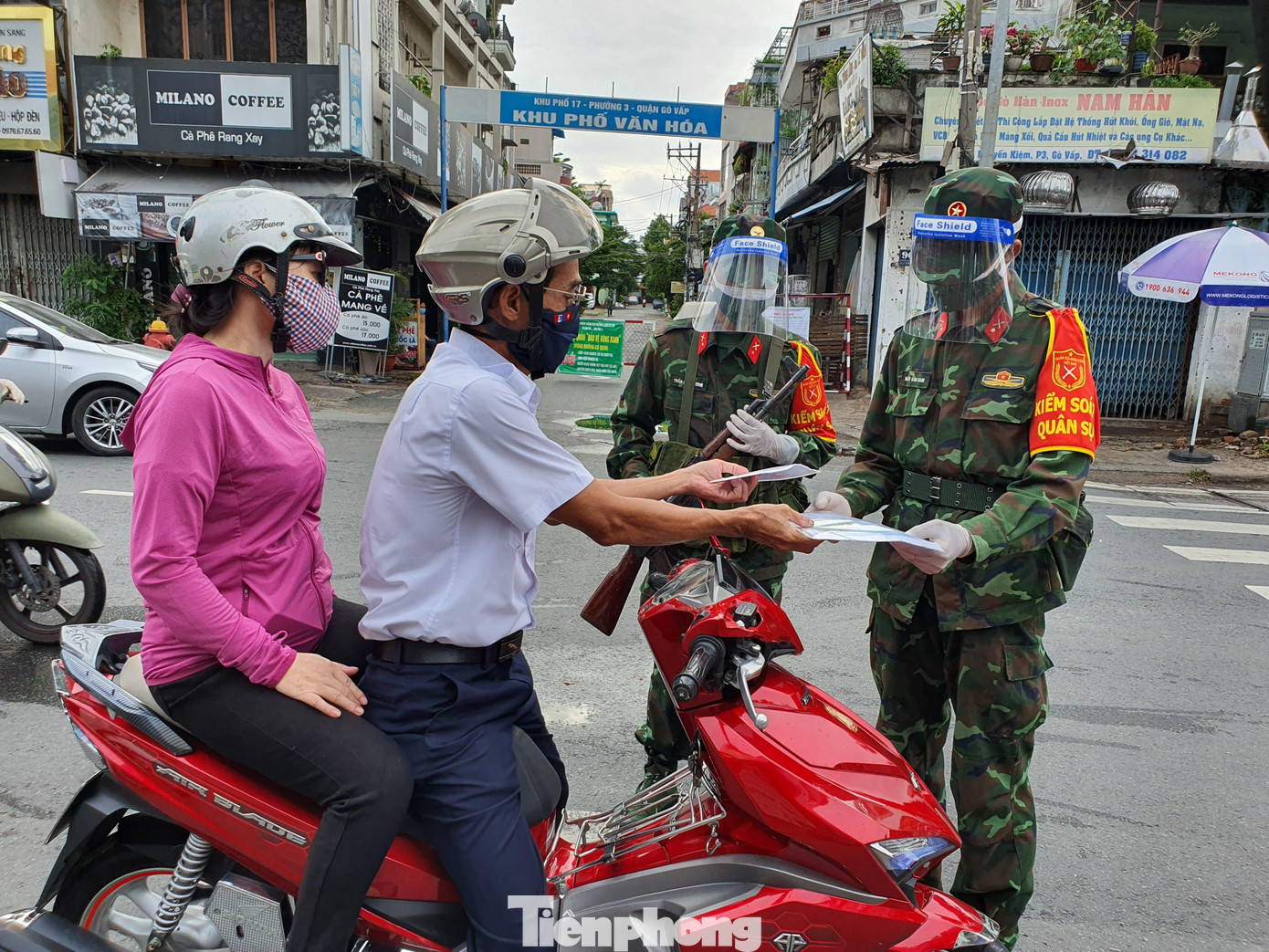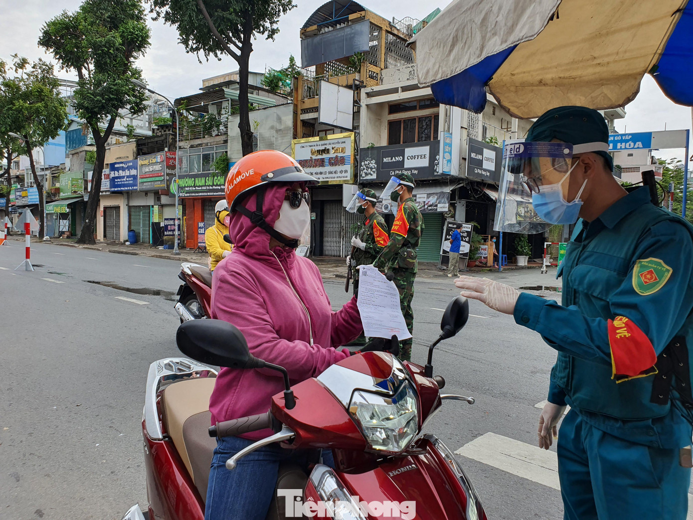 Bà Lan đến chốt trình bày đi tiêm vắc xin ở quận 4. Do nhà ở Gò Vấp nhưng sang tận quận 4 tiêm phòng nên lực lượng kiểm soát chốt yêu cầu xem thư mời, tin nhắn.