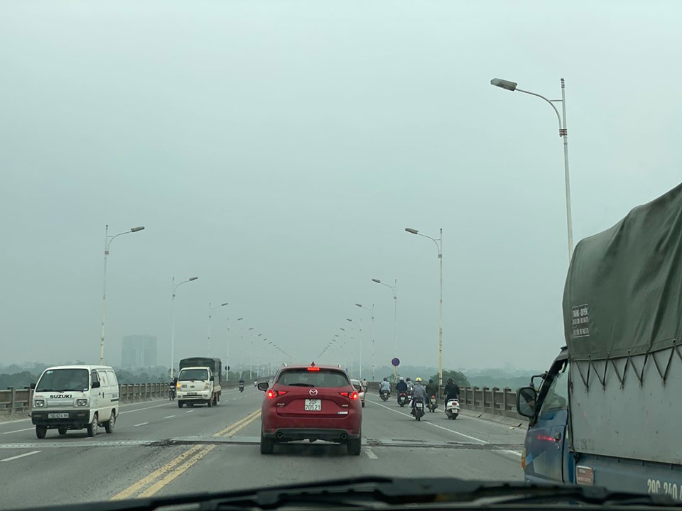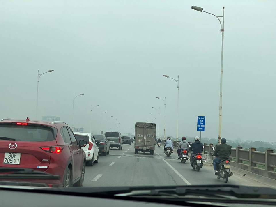 Cửa ngõ ra vào thành phố khá tấp nập. Dưới đây là chùm ảnh chụp ở 2 bên đầu và trên cầu Vĩnh Tuy lúc 9h45 sáng nay:
