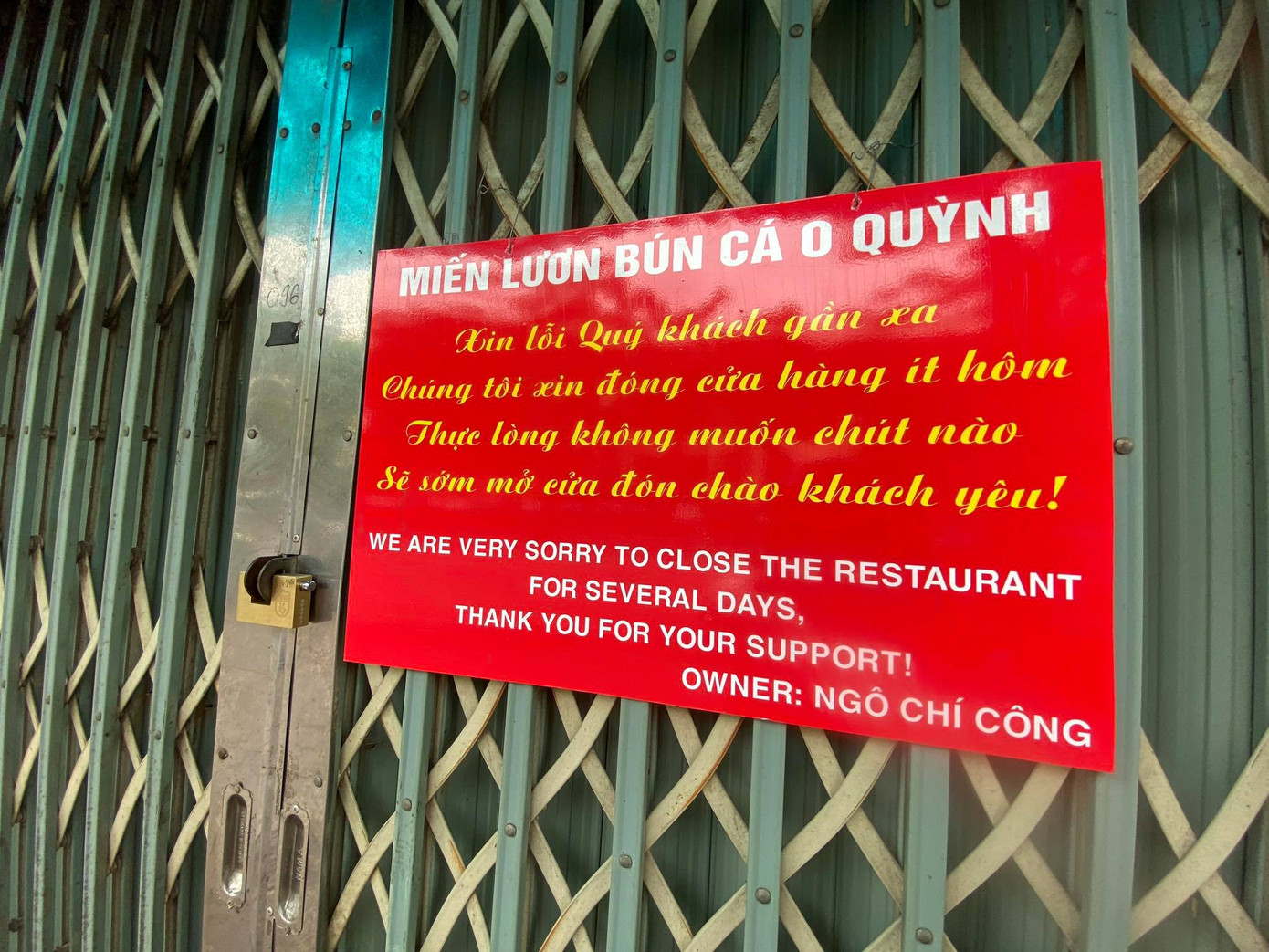 Quán ăn sáng miến lươn, bún cá nổi tiếng trên phố Tôn Thất Tùng (Hà Nội) dán thông báo đóng cửa vì dịch COVID-19