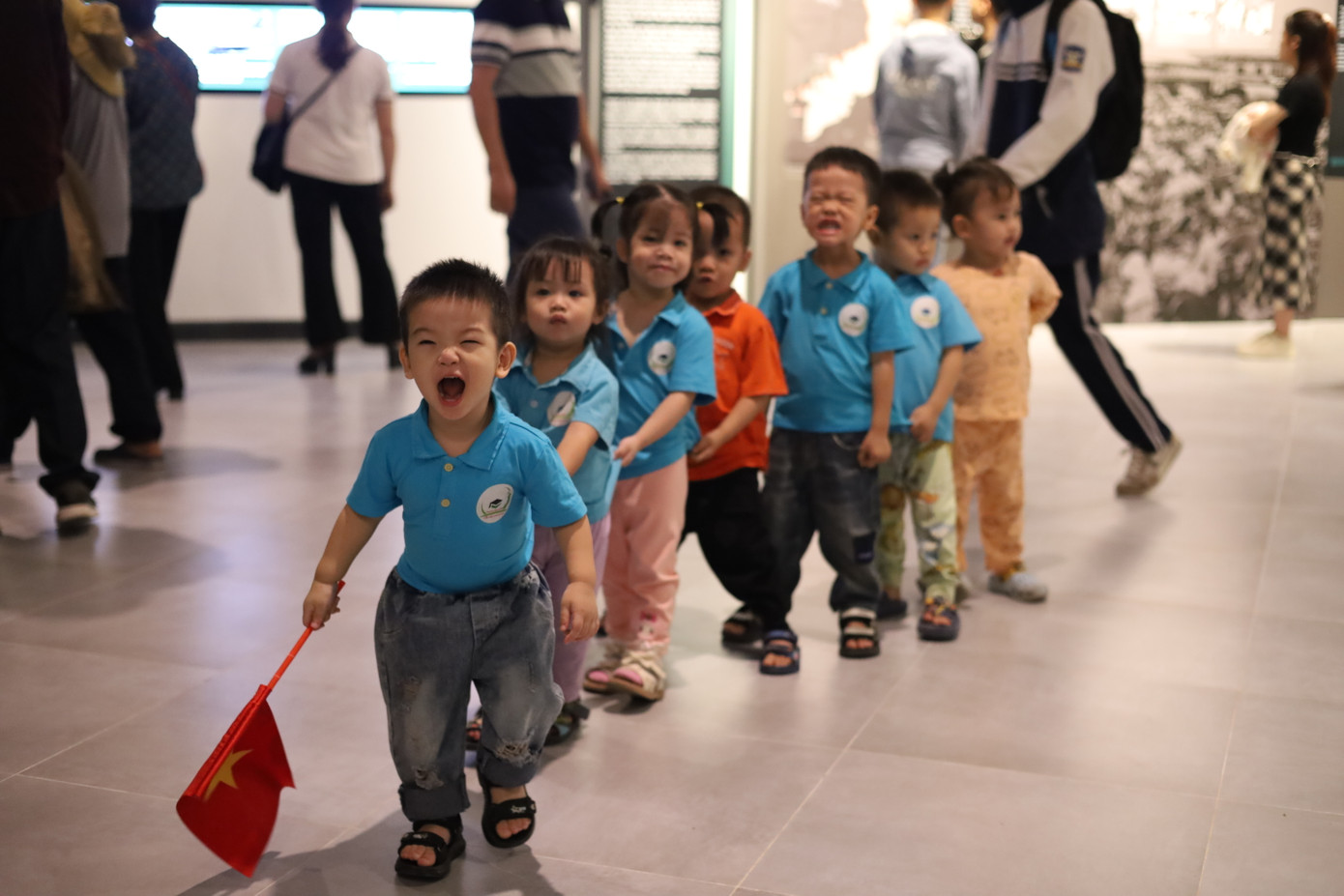 | Các em học sinh mầm non có mặt rất sớm háo hức tham quan Bảo tàng. |
