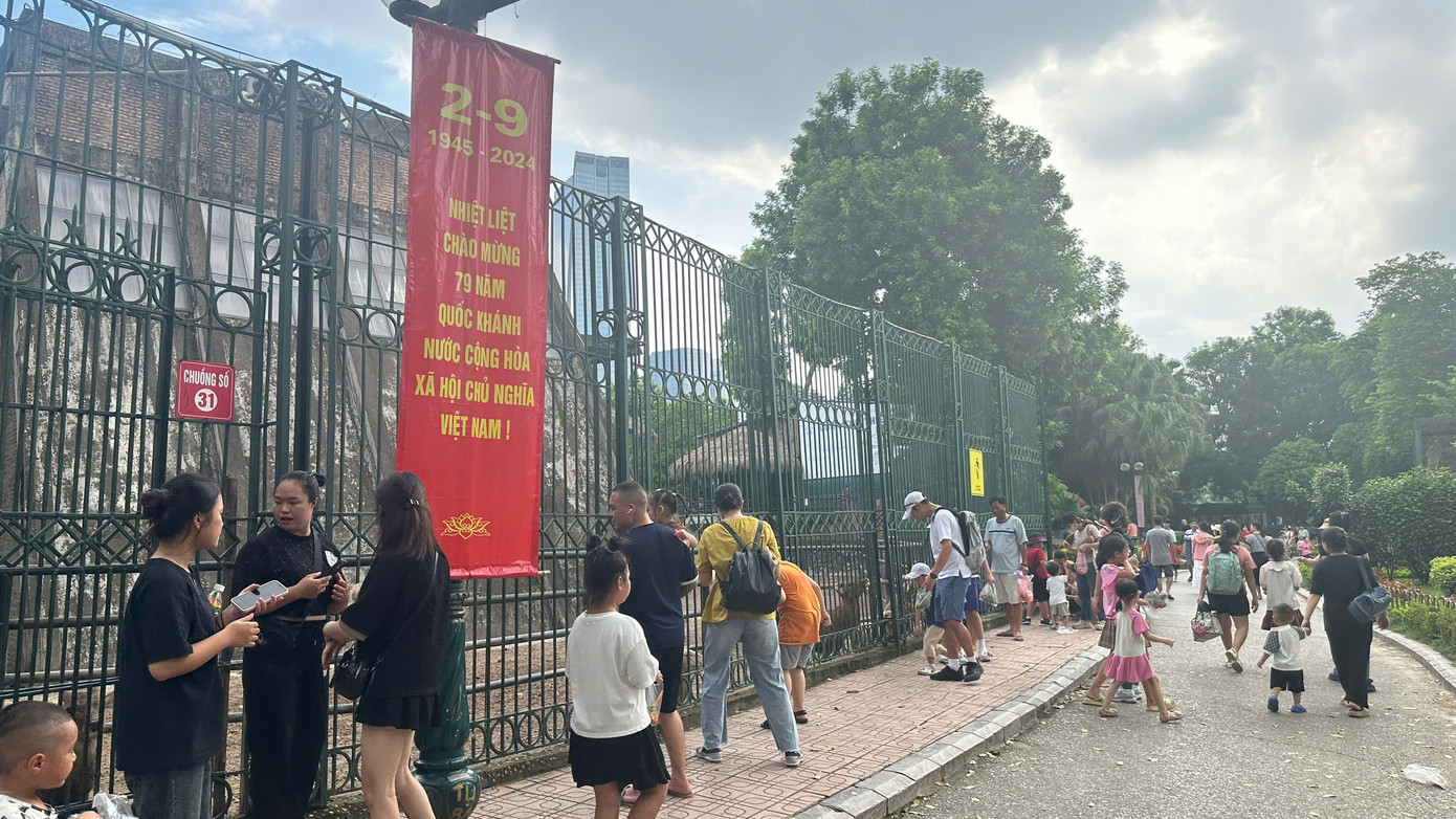 | Ghi nhận của PV trong ngày đầu của kỳ nghỉ lễ Quốc khánh 2/9 cho thấy, đường phố Hà nội khá vắng vẻ, trong khi Vườn Thú Hà Nội (hay còn gọi là Công viên Thủ Lệ) đã đông từ sáng sớm. Trước giờ mở cửa đã có nhiều phụ huynh bế con nhỏ chờ đến giờ vào trong. |