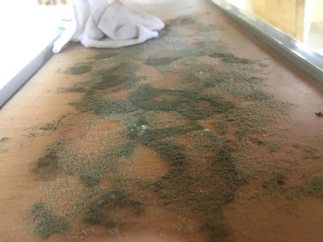 Chắc ai cũng sẽ hết hồn khi nhìn những chiếc bàn đóng bụi, nấm mốc dày cả tảng thế này. (Ảnh: Group Trường Người Ta) Mặc dù chụp ảnh thì thấy khá đẹp mắt hệt như một thảm thực vật nhưng khi lại gần thì ai nấy đều phải giật mình. Bên cạnh đó, một số trường trên cả nước đã cẩn thận hơn khi cho các bạn học sinh đến quét dọn trước khi chính thức trở lại trường.
