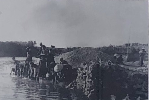 Công trường hồ Đại Lải những năm 1960 với khối lượng công việc nặng nhọc, điều kiện sinh hoạt khó khăn, ở lán trại, nằm sàn nứa… nhưng khí thế lúc nào cũng hừng hực; người gánh gồng, người đẩy xe nhộn nhịp hòa với tiếng hát, tăng năng suất lao động, giúp công trình hoàn thành đúng tiến độ. Ảnh tư liệu