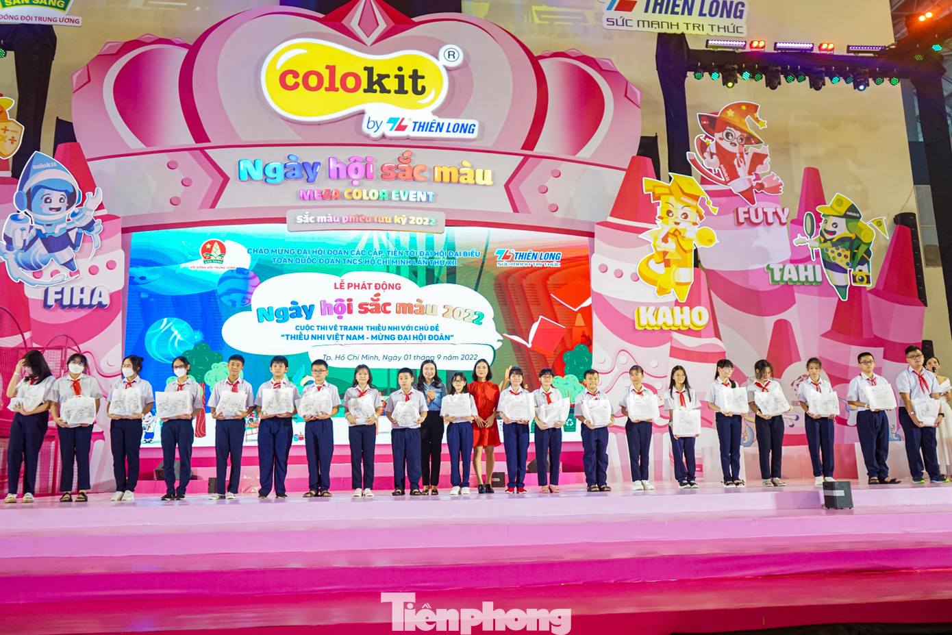 | Tại lễ phát động “Ngày hội sắc màu” năm 2022, Hội đồng Đội Trung ương cùng với Công ty Cổ phần Tập đoàn Thiên Long, Nhãn hàng dụng cụ Mỹ thuật Colokit đã trao nhiều suất quà tặng hấp dẫn cho đại diện hơn 500 em thiếu nhi tham gia ngày hội. |