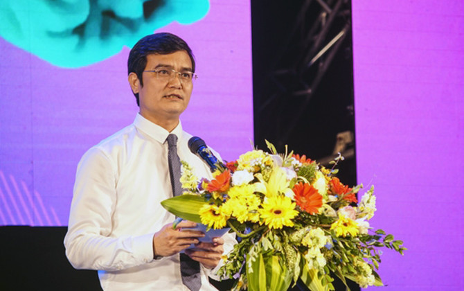 Anh Bùi Quang Huy, Bí thư Trung ương Đoàn, Chủ tịch Trung ương Hội Sinh viên Việt Nam phát biểu tại Ngày hội Tân Sinh viên 2019.
