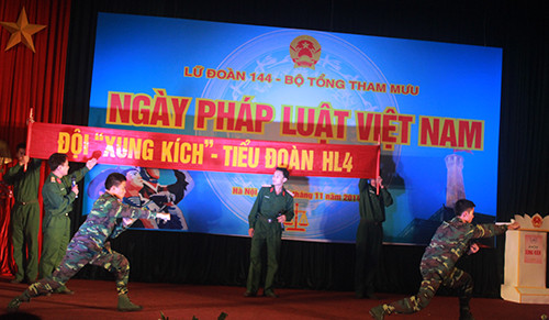 Tham dự chương trình có lãnh đạo, đại biểu Bộ Tổng tham mưu, Vụ Pháp chế - Bộ Quốc phòng, Vụ Giáo dục, phổ biến pháp luật – Bộ Tư pháp cùng hàng trăm đoàn viên thanh niên trong và ngoài quân đội.