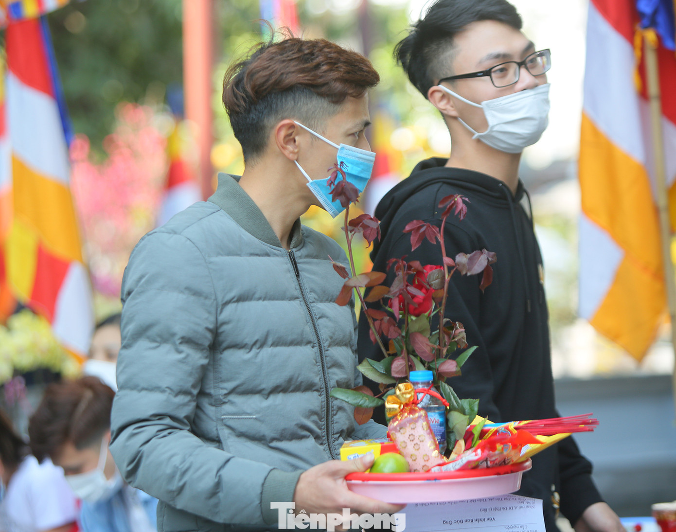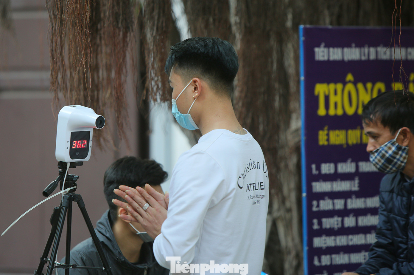 Tất cả người đi lễ đều được tiến hành đo thân nhiệt trên máy tự động, yêu cầu sát khuẩn tay, đeo khẩu trang khi vào chùa hành lễ.