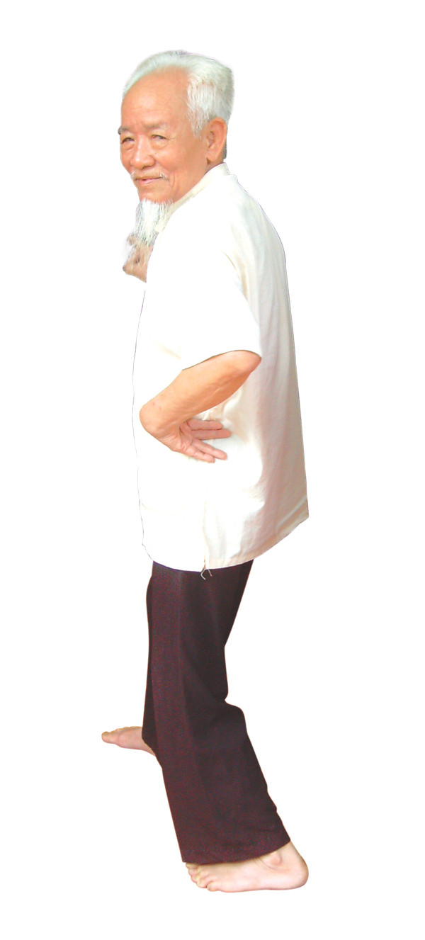 | Cụ Lục hướng dẫn từng động tác múa bồng cho lớp trẻ. |