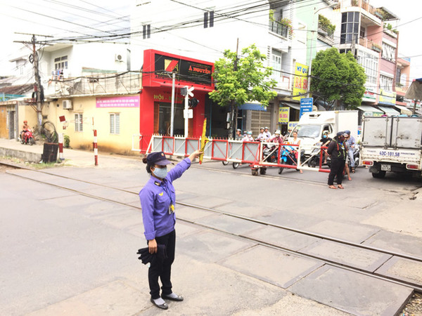 Khi tín hiệu báo tàu tới reo lên, chị nhanh chóng kéo rào chắn để đón tàu qua và đảm bảo an toàn người tham gia giao thông. Mỗi chuyến tàu qua an toàn, dù trên khuôn mặt đầm đìa mồ hôi nhưng các chị vẫn luôn nở một nụ cười thật tươi.
