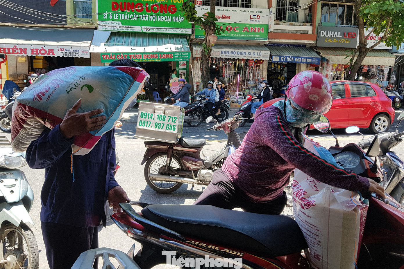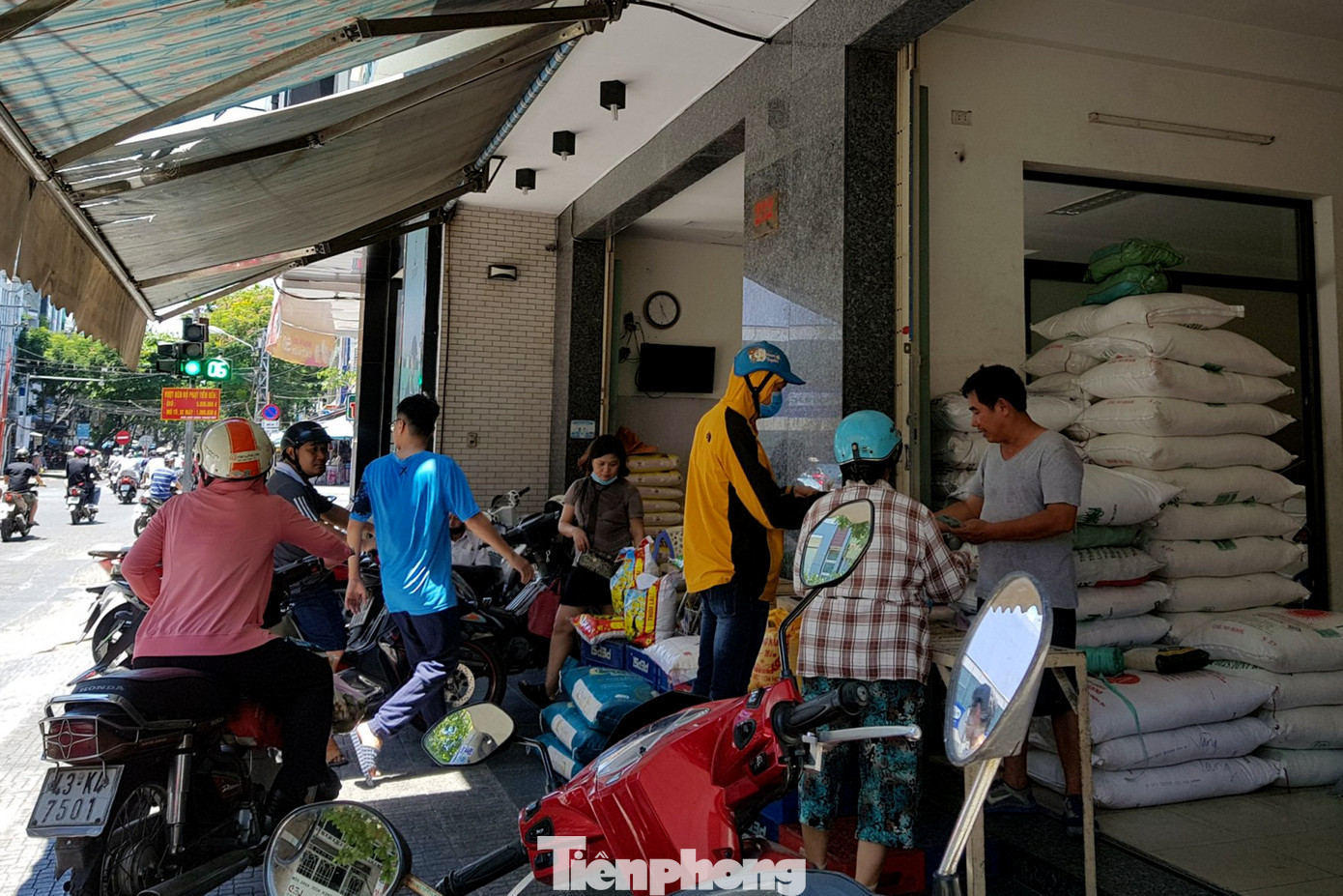 Một chủ tiệm gạo trên đường Ông Ích Khiêm cho hay, bắt đầu từ 11h, người đến mua gạo nhiều hơn so với mọi ngày. Đa phần đều mua cất để dùng dần trong thời gian giãn cách xã hội.
