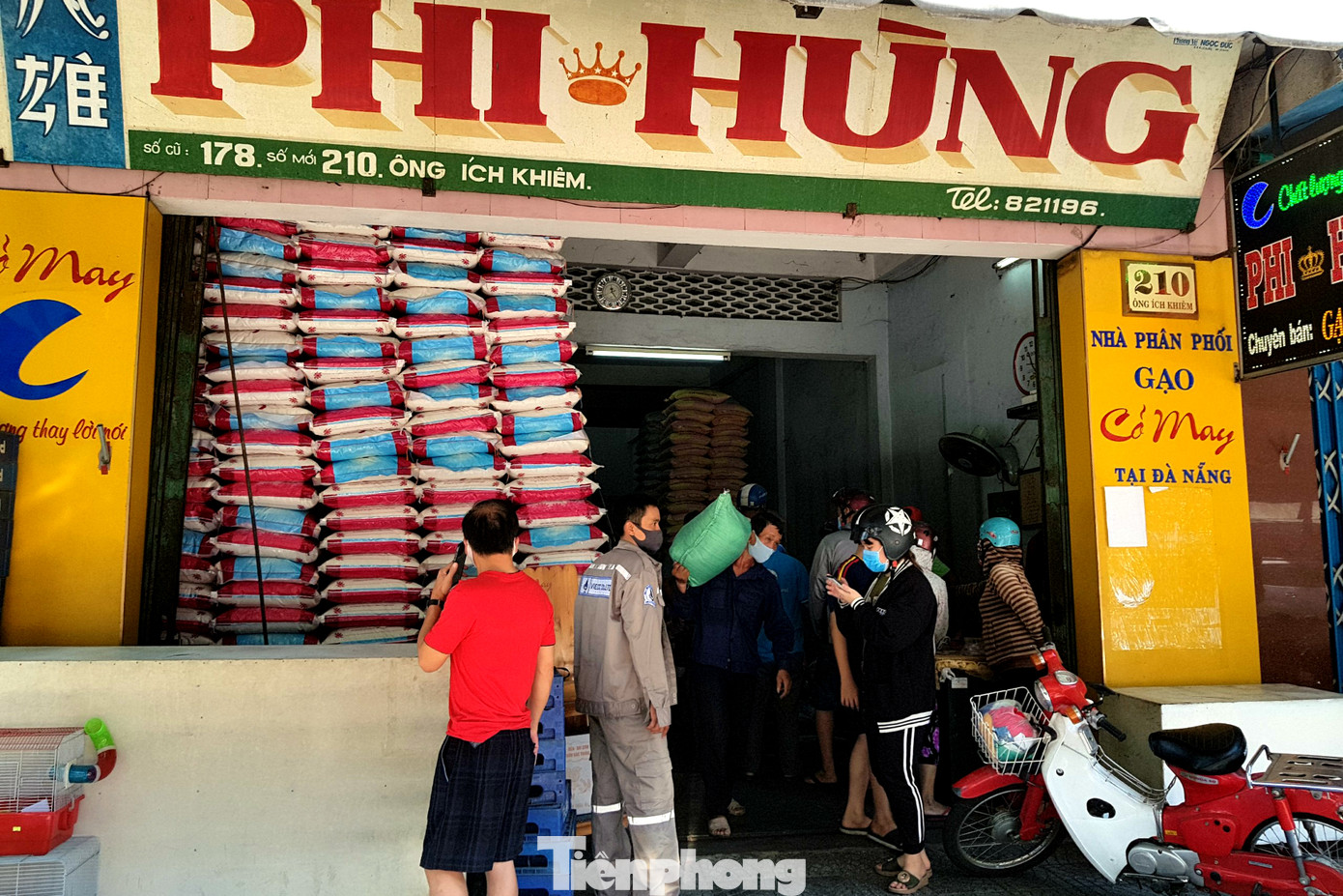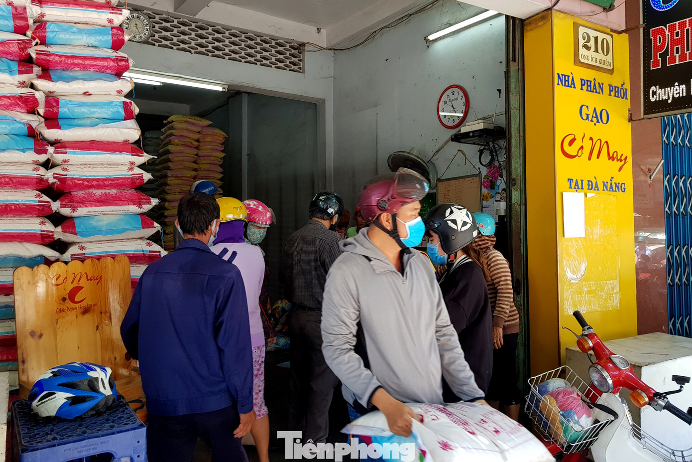 Trưa 26/7, ghi nhận tại một số cửa hàng gạo trên đường Ông Ích Khiêm, Hoàng Hoa Thám..., nhiều người dân đổ đi mua gạo để dự trữ. Người ít thì mua 1 – 2 bao, người nhiều thì mua hẳn 4 – 5 bao.
