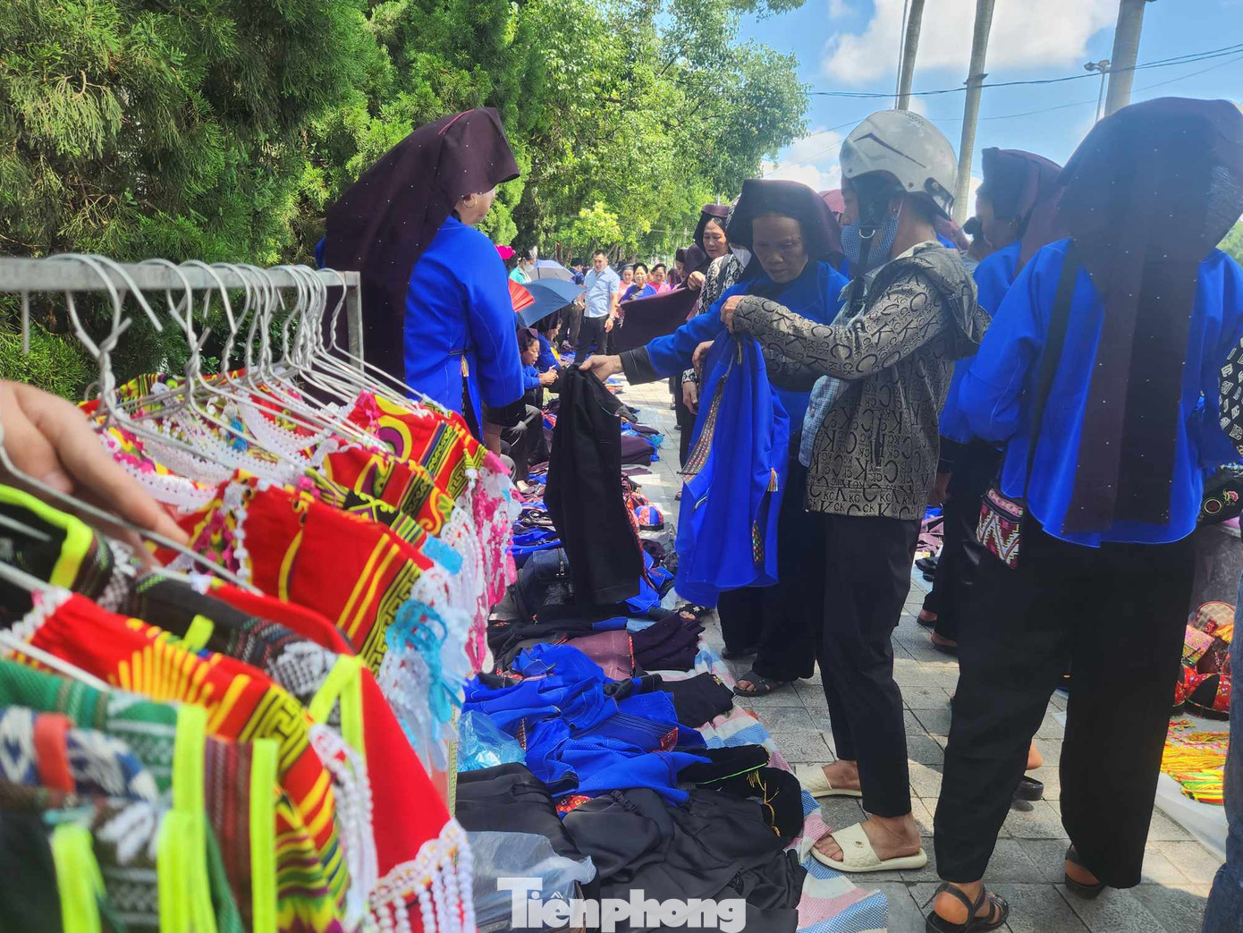 | Tại nơi hát, hoạt động mua bán trang phục, thổ cẩm của người Tày, Nùng cũng diễn ra nhộn nhịp. (Ảnh: Duy Chiến) |