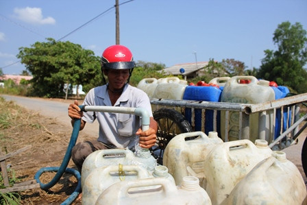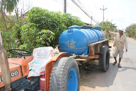 Trời nắng nóng như đổ lửa, ông Lê Công Trình (ngụ xã An Hiệp, huyện Ba Tri, tỉnh Bến Tre) chở chiếc xe gắn máy kéo theo thùng tự chế phía sau với hơn chục can nhựa dùng để chở nước ngọt bán. Ông Trình cho biết: “Nhà tôi không có mạch nước ngầm nên tôi đến giồng cát mua lại của chủ giếng khoan rồi cung cấp cho các hộ dân kiếm lời. Những chiếc xe công nông chỉ cung ứng cho các hộ ở ngoài đường lớn, trong khi đó nhiều người ở trong đồng có nhu cầu nên tôi dùng xe gắn máy để chở nước phục vụ bà con”.