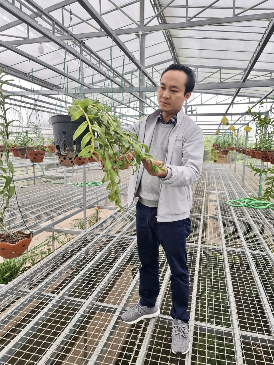 “Ngoài ra, tạo tiểu khí hậu cho vườn lan cũng rất quan trọng. Phong lan ưa nắng 50-70%, nghĩa là người chơi phải che một lớp lưới hoặc trồng dưới tán cây thưa lá, không nên trồng lan trực tiếp dưới nắng, dễ gây cháy lá. Lan ưa thoáng mát nên người chơi cần làm vườn thông thoáng nhưng tránh gió lùa mạnh gây mất nước, khô héo”, Minh Xa chia sẻ.