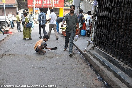Mohammad không phải là cậu bé duy nhất làm công việc “săn” cám vàng. Ở thành phố chuyên chế tác đồ kim hoàn - Kolkata, một thành phố nằm ở miền đông Ấn Độ, những cậu bé như Mohammad đã quen với công việc lọc ra từ cát bụi những cám vàng nhỏ li ti.
