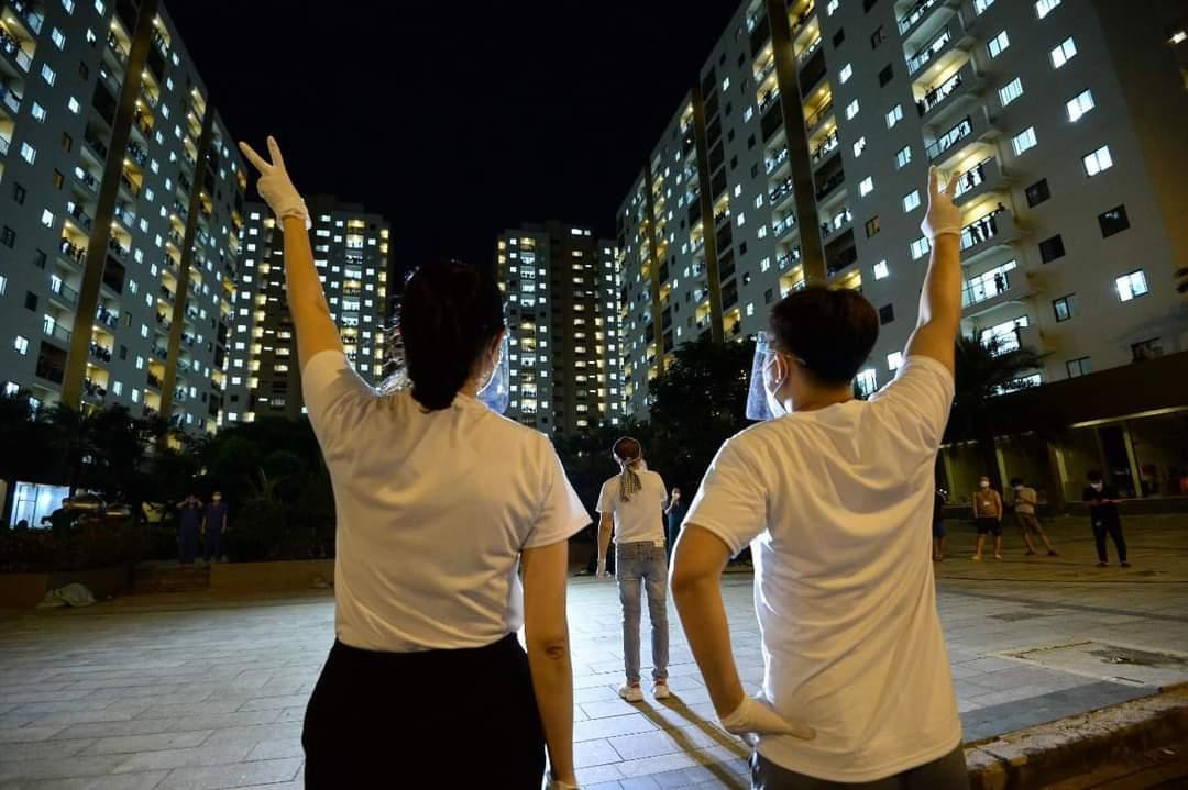 | Các y, bác sĩ và các bệnh nhân F0 được tiếp sức từ những lời ca. (Ảnh: Nguyễn Á) |